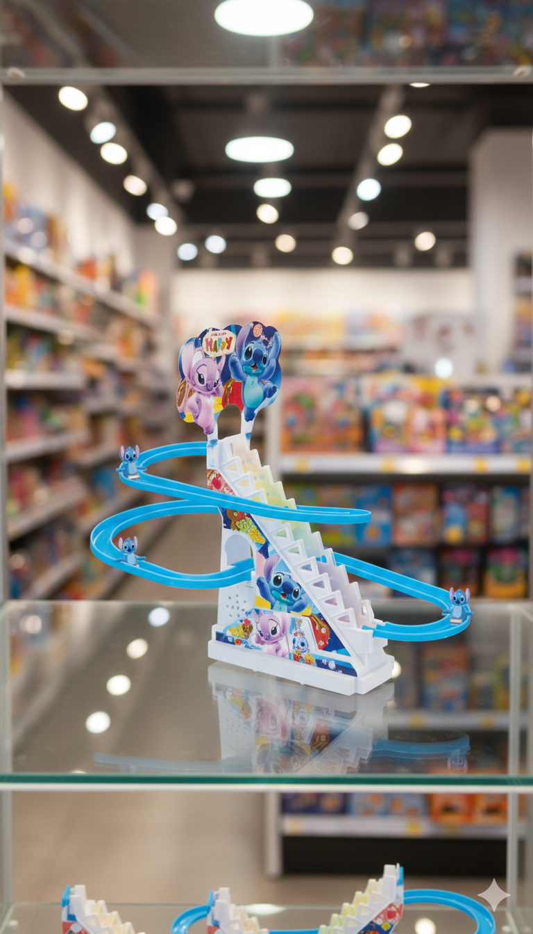 Esta divertida escalera automática de Stitch es el regalo perfecto para sorprender. Los muñequitos suben solos por la escalera y se deslizan una y otra vez, acompañados de luces y música que hacen que el juego nunca termine 🎶✨